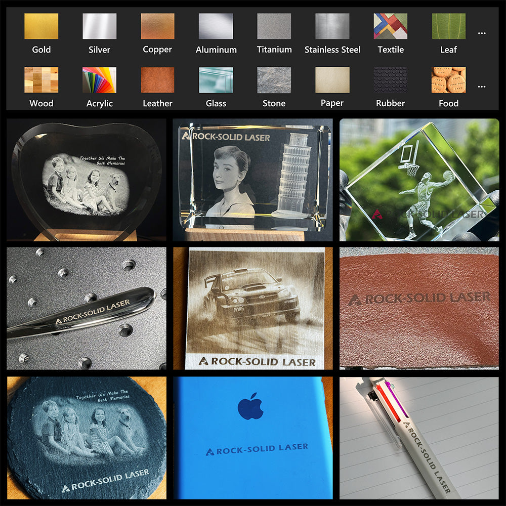 In addition to 3D subsurface engraving, our UV laser can perform surface marking on a variety of materials, such as plastic, glass, wood, leather, paper, and silicone—something green-light laser machines cannot achieve.